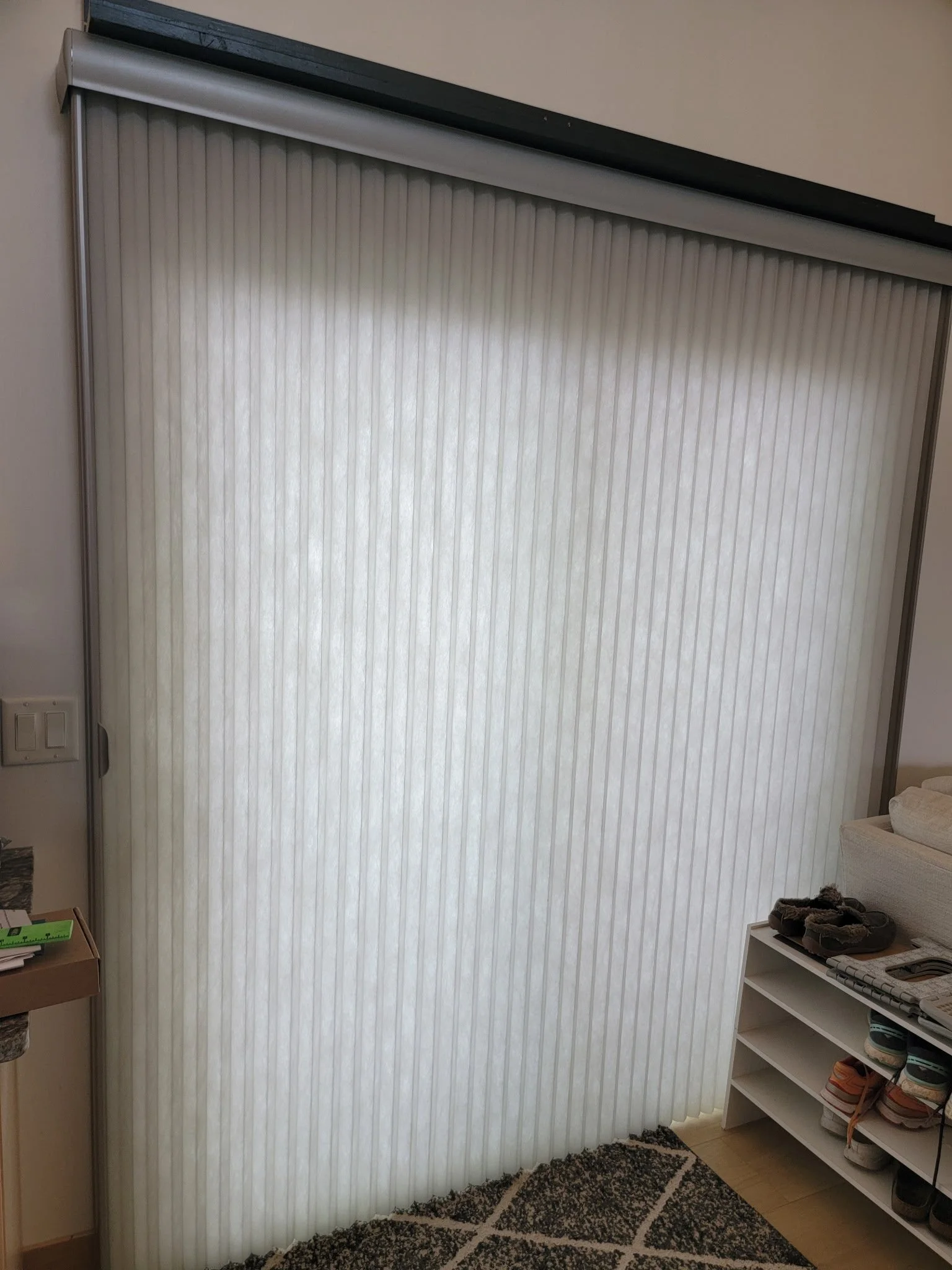 Alta Cellular shade with rechargeable wand for a patio door